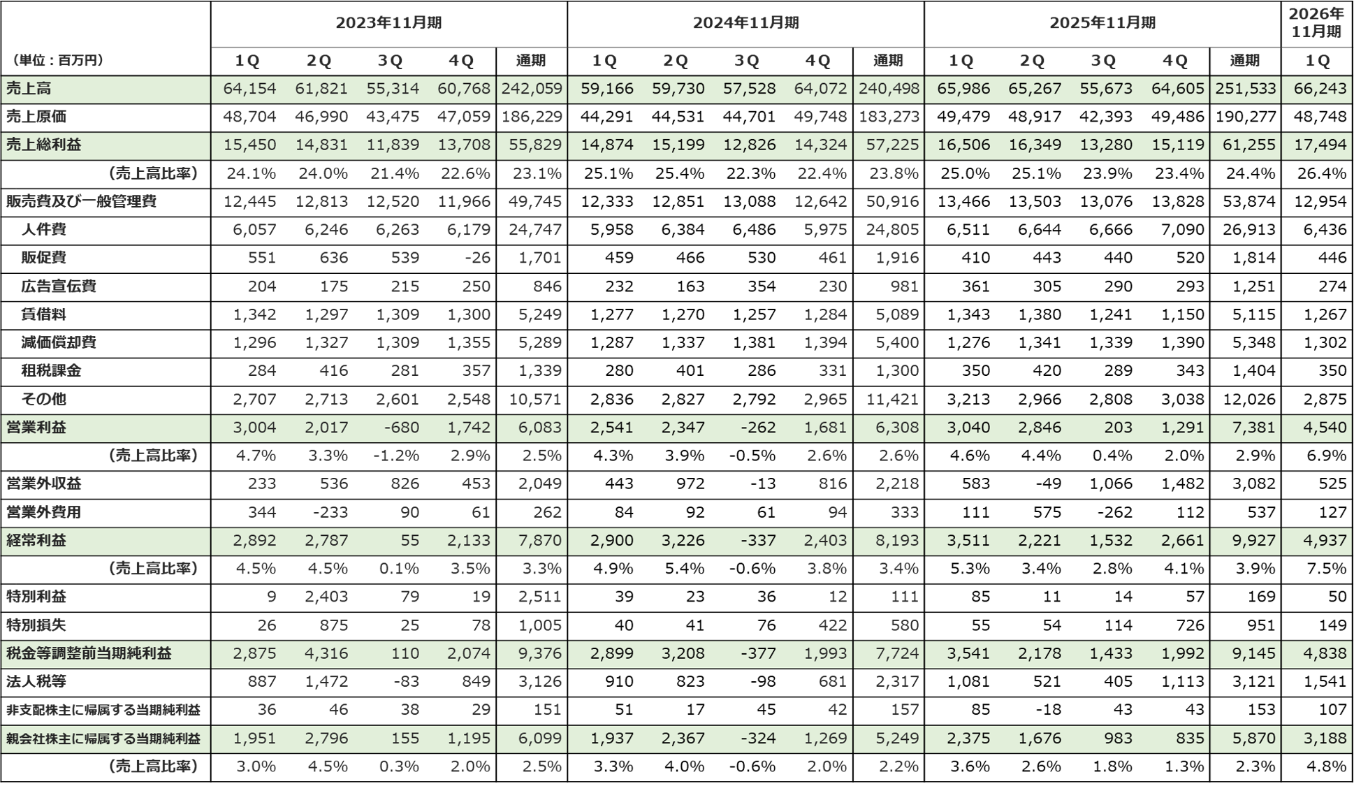 四半期財務データ