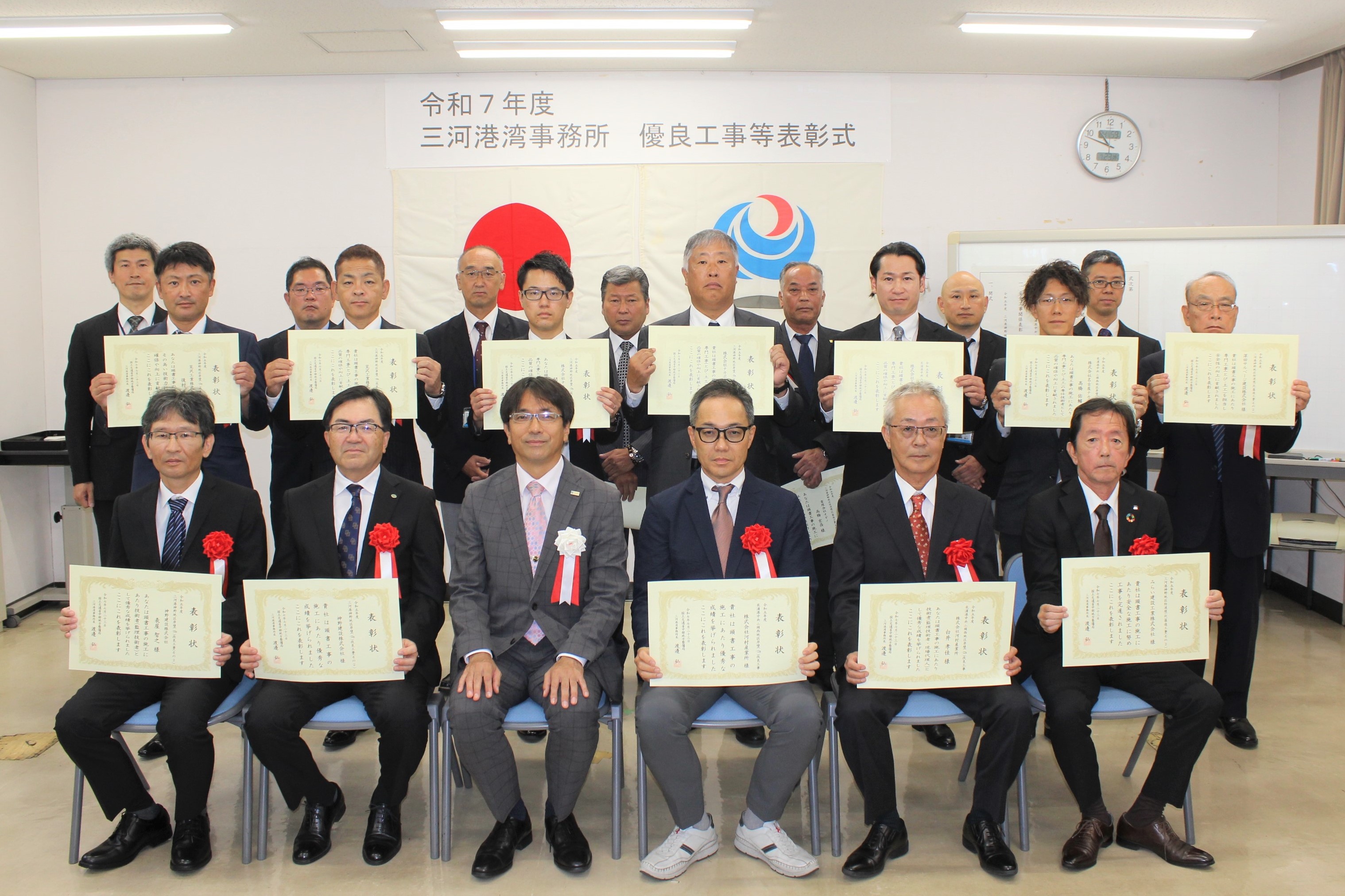 <国土交通省 中部地方整備局> 優良工事表彰・優良工事技術者表彰(7月23日、三河港湾事務所) 工事名:令和5年度 三河港神野地区岸壁(-10m)改良工事(その2)