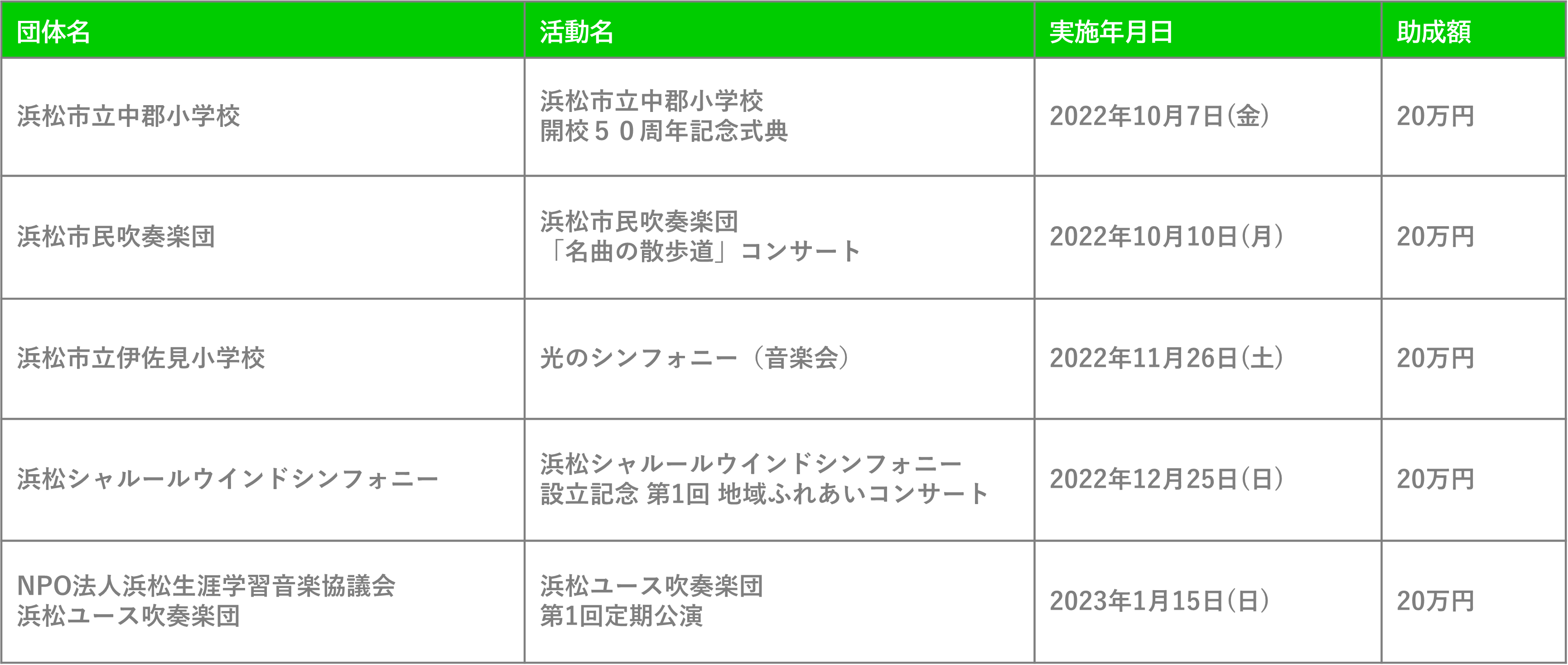 サーラ音楽ホールは「音楽の都 浜松」における多彩な市民活動の促進と、次世代の音楽文化を担う人材の育成を基本理念としています。「サーラ音楽ホール活動助成制度」は、地域に根ざす団体が企画・実施する創造的な文化芸術活動を応援します。